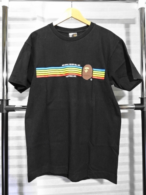- 初期 復刻 APE レインボーロゴTシャツ キムタク APE HEAD 猿の惑星 A BATHING APE(ア ベイシング エイプ) アーカイブ ヴィンテージ black