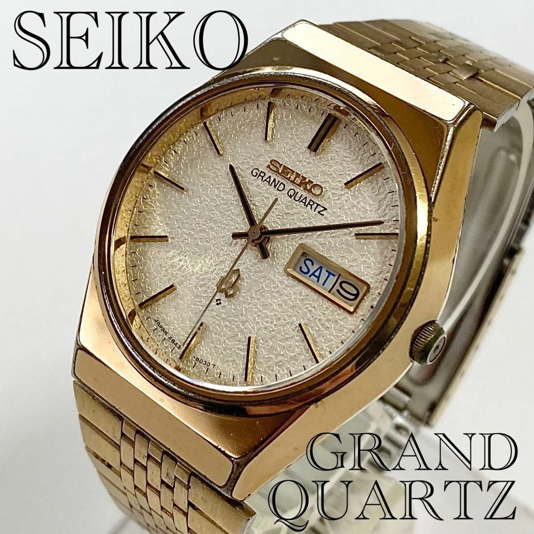 - 966 希少 セイコー グランドクォーツ 腕時計 メンズ 4843-8100 シルバーダイヤル SEIKO GRAND QUARTZ 稼働良品 ゴールド 電池交換済み