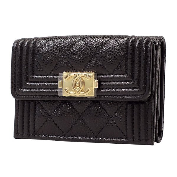 - 送料無料 本物 人気 CHANEL シャネル ボーイシャネル コンパクトウォレット ブラック キャビアスキン A84432 ミニ財布 レディース カード