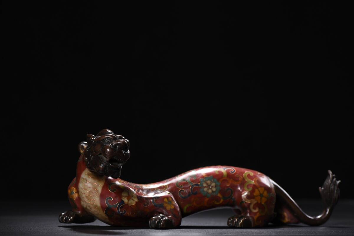 - ▽鴻▽ 銅製 景泰藍 琺瑯彩 龍行天下 置物 賞物 古賞物 中国古玩 中国古美術