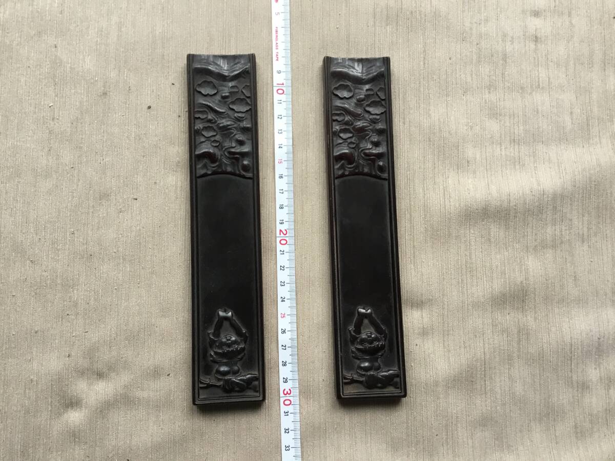- 文鎮 文珍 ブンチン 紫檀黒檀花梨唐木 興味深い細密な彫刻 二本ペアセット とくにキズや凹みはナシ 敲き音は頑丈かつ重量 です