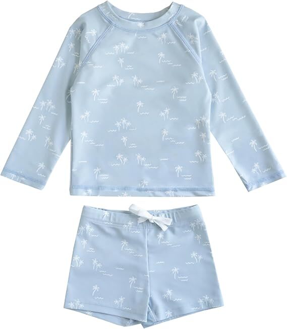 > 120㎝ [GoUseGo] キッズ水着 男の子 3点セット(長袖ラッシュガード、サーフパンツ、キャップ)子供 スイムウェア 上下セット 幼児