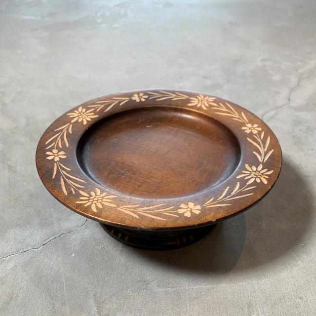 > 【直径 19.8㎝】スイス製 REUGE エーデルワイス 木製 回転式オルゴール トレイ■ビンテージ アンティーク レトロ アメリカ雑貨 リュージュ