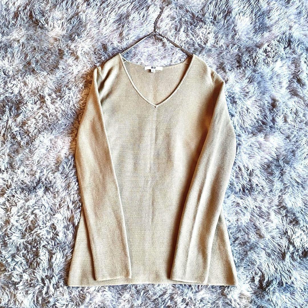- 【UNIQLO】ユニクロ リップルVネックチュニック ライトブラウン (S)