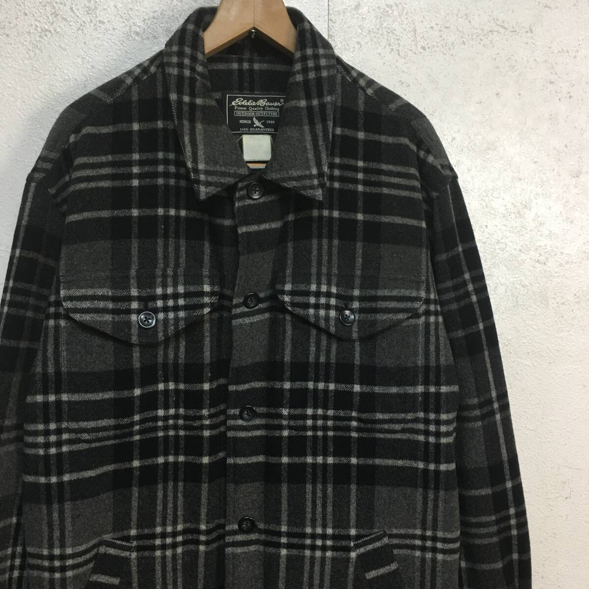 > FNY23/80 Eddie Bauer エディーバウアー チェック柄 裏地キルティング ウール ジャケット ブラック×グレー コート アウトドア系〇