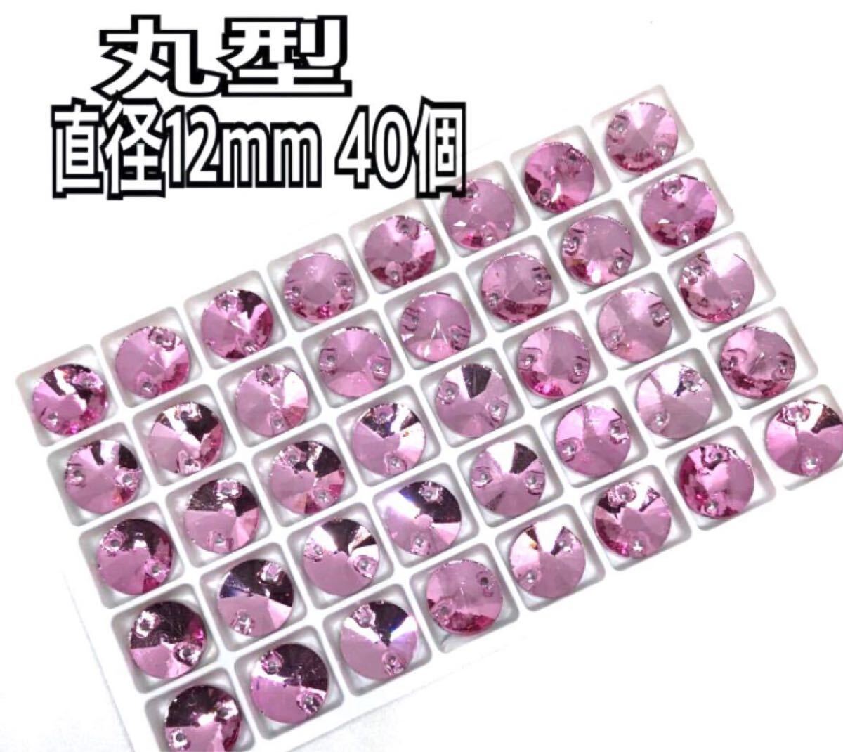 - 直径12mm 40個 丸型ガラスビジュー 高輝度 衣装装飾 レオタード 新体操 ソーオン ピンク