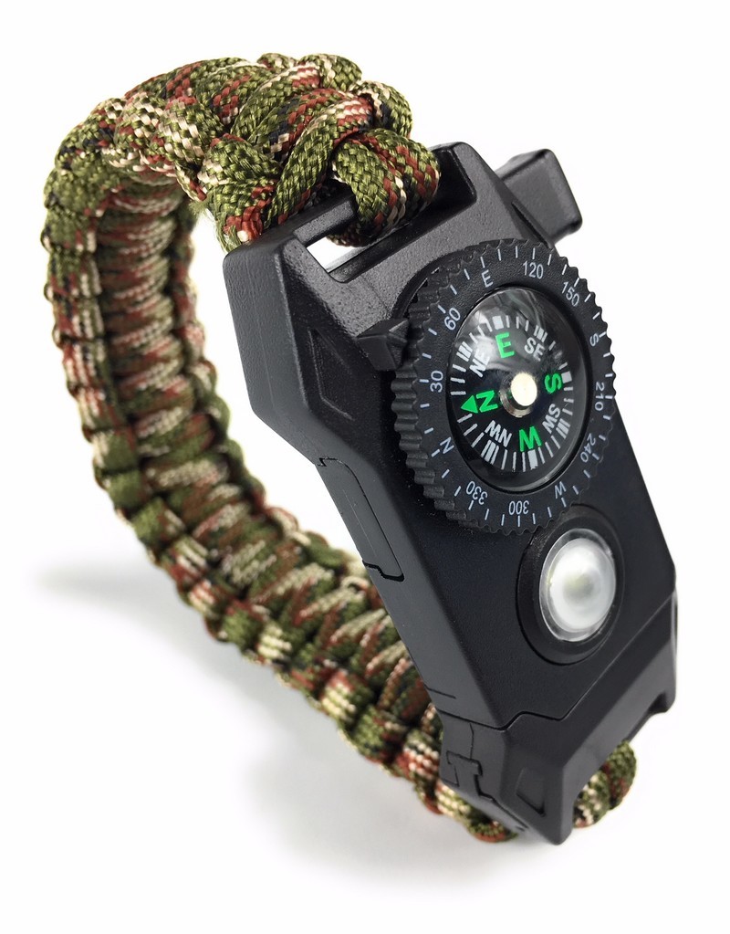 - LEDライト付 パラコードブレスレット 【 迷彩 】多機能 サバイバルブレスレット アウトドア ミリタリー 防災グッズ パラブレス 方位磁石 笛