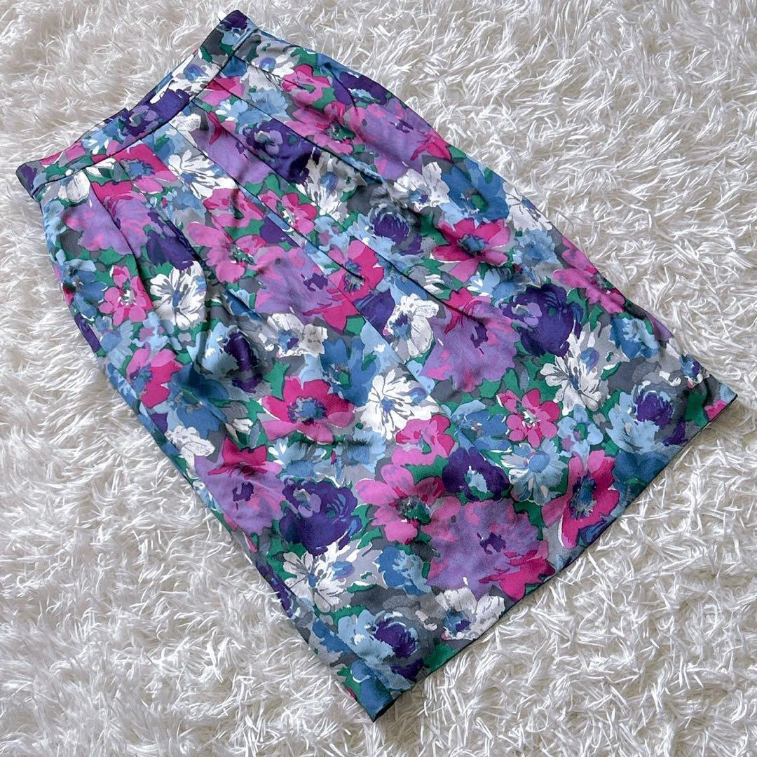 - 『クリスチャンディオール』 Christian Dior (S) 花柄タイトスカート ミディ丈 レーヨン
