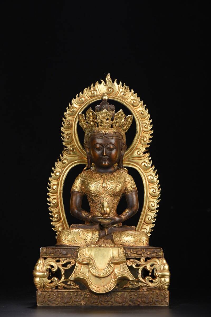- 【超珍館蔵】銅製 塗金 無量寿仏 仏教古美術 供養品 古賞物 古美術品 稀少珍蔵品