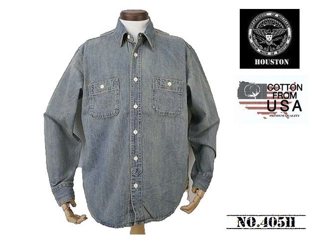 - 【送料無料 27%OFF 】HOUSTON ヒューストン USAコットン デニム WORKシャツ NO.40511 BLEACH_Lサイズ