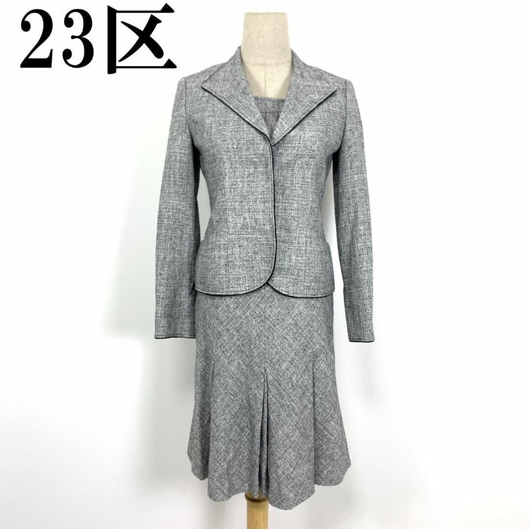 - LA6215 23区 シルク 半袖ワンピースセットアップ シルバーラメ入り テーラードジャケット グレー 34