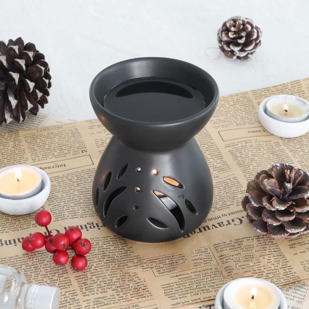 - アロマポット 陶器 茶香炉 アロマバーナー キャンドル アロマ炉 アロマランプ セパレート ホルダー トレイ ブラック 黒 cim-223-Black