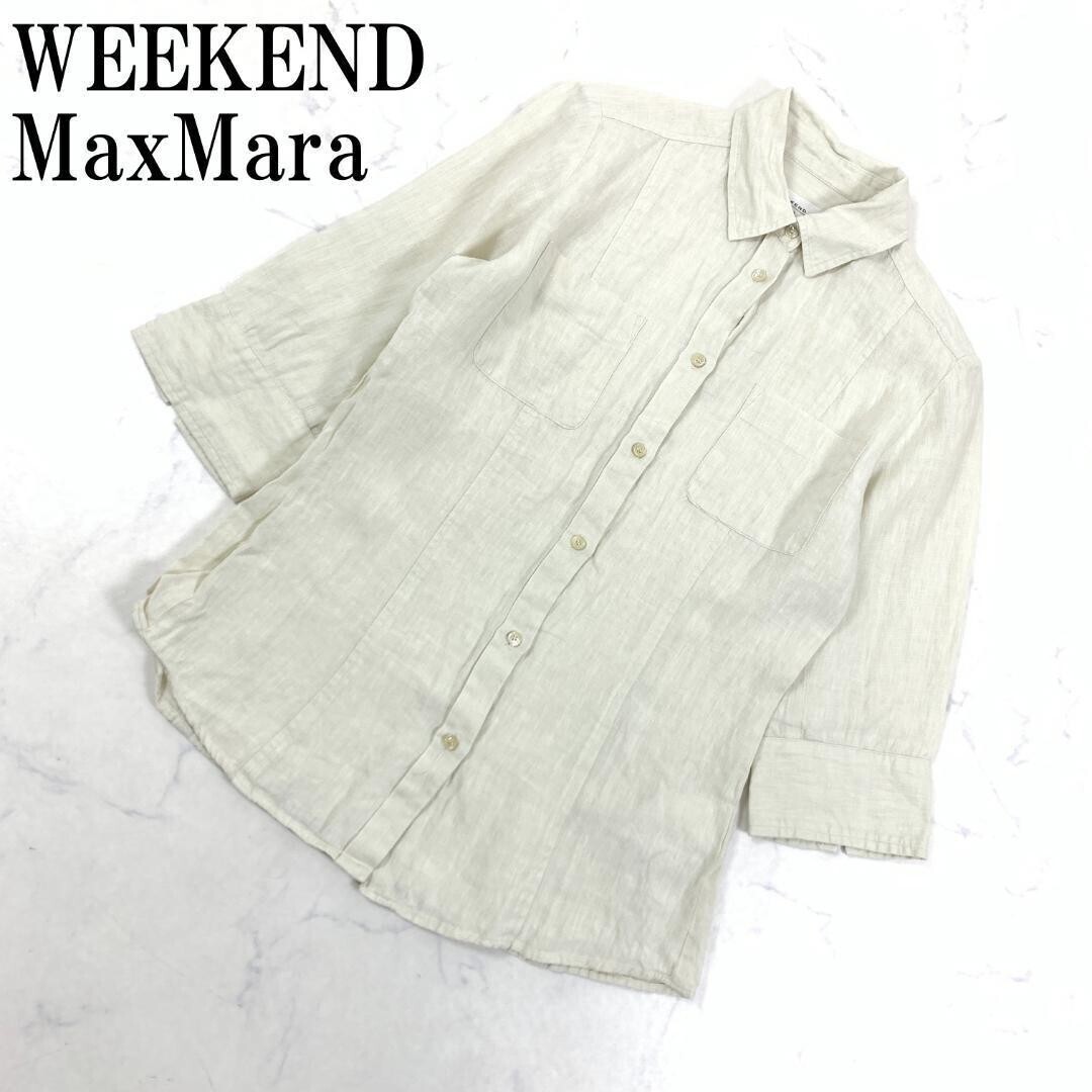 - LA6072 マックスマーラ 半袖リネン ボタンシャツ WEEKEND MaxMara カジュアル 袖スリット有ベージュ S