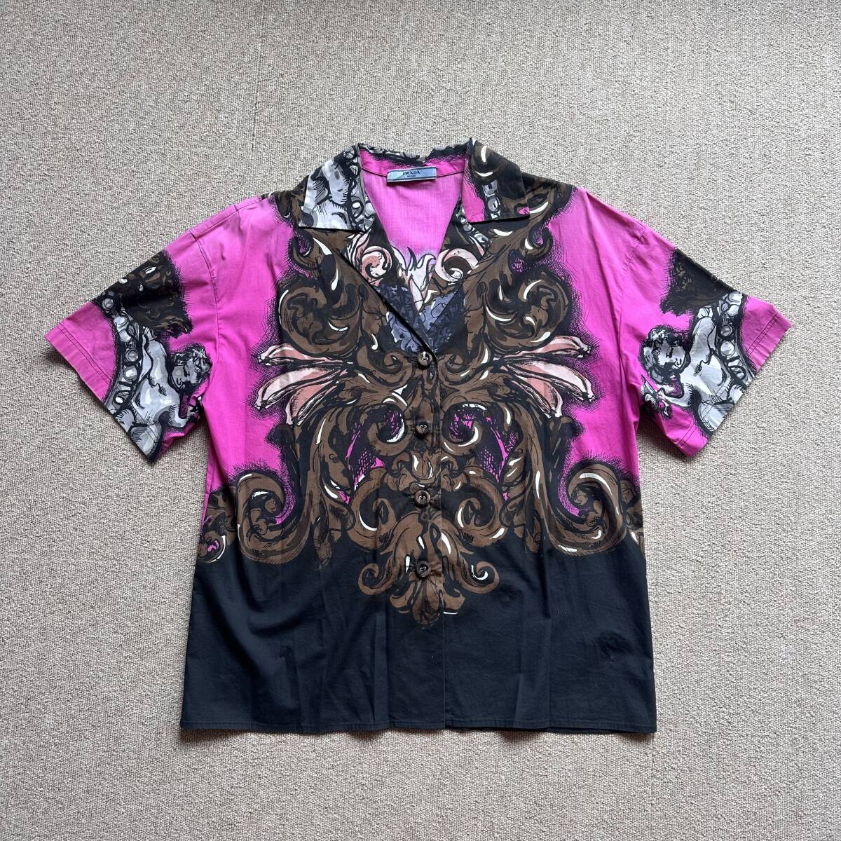 - 希少 11SS PRADA プラダ バロック柄 開襟 半袖シャツ 42
