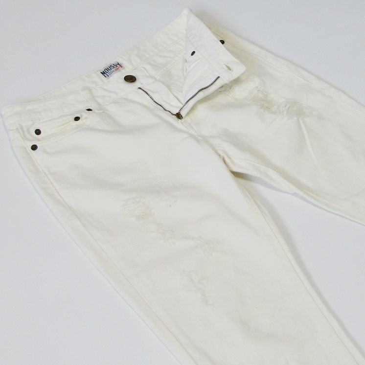 - MOUSSYマウジー▼クラッシュスキニーホワイトデニム▼大きめサイズ▼27インチ▼ウエスト約80cm