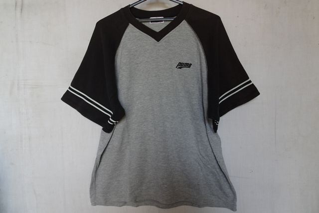 - PUMA/プーマ/PHF336T/半袖Tシャツ/メッシュ系素材/Vネック/ラグラン袖黒切り替え/袖口白ライン/グレー杢/Lサイズ(5/14R7)