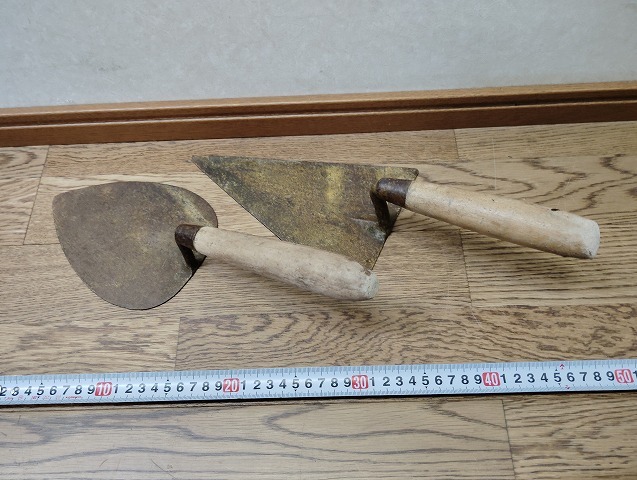 - 80s505y カネカ 左官鏝 2点 れんが鏝 ブロック鏝 こて コテ 左官道具 工具 レトロ 中古 現状品 ジャンク(北海道・沖縄・離島は発送不可)