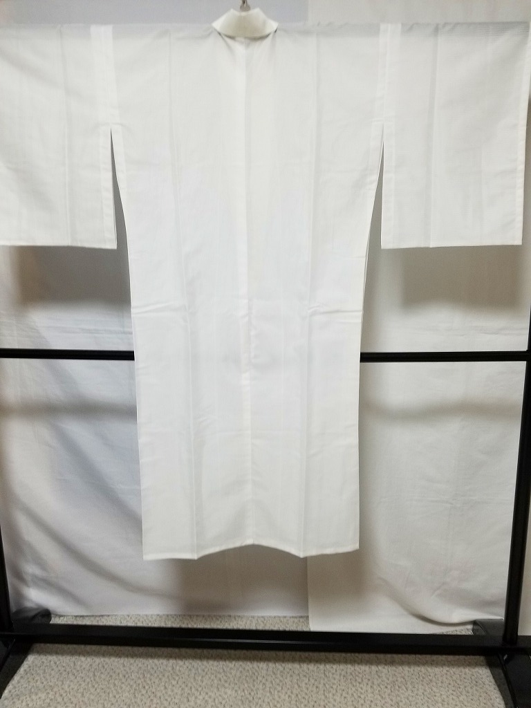 > 【桐徳】夏絽地.白長襦袢☆美品{化繊地*絽地*白色*長襦袢}*丈128-裄64*白地*半襟付け*№7168