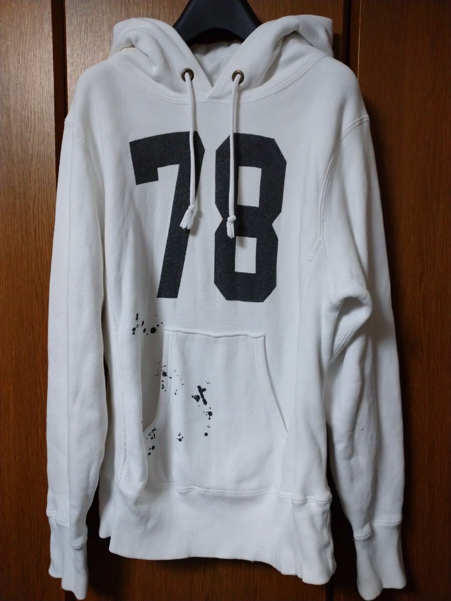 - 復刻 緑単色タグ チャンピオン リバースウィーブ パーカー S ダメージ加工 ナノユニバース ロットワイラー RTW 別注 スウェット