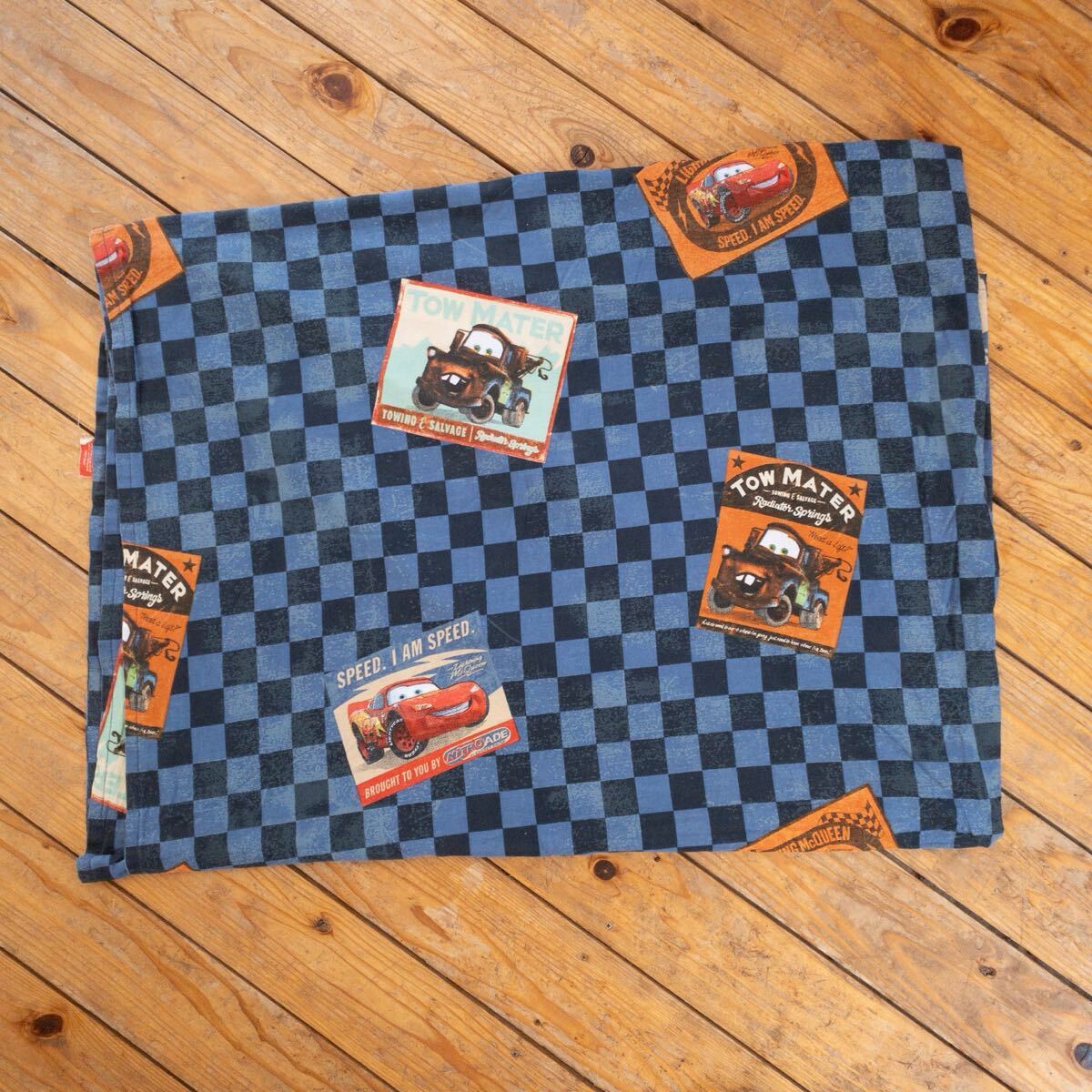 - USAヴィンテージ ベッドシーツ CARS カーズ リメイク生地 素材 格子柄 車 ライトニングマックイーン フラットシーツ アメリカ仕入 B2648
