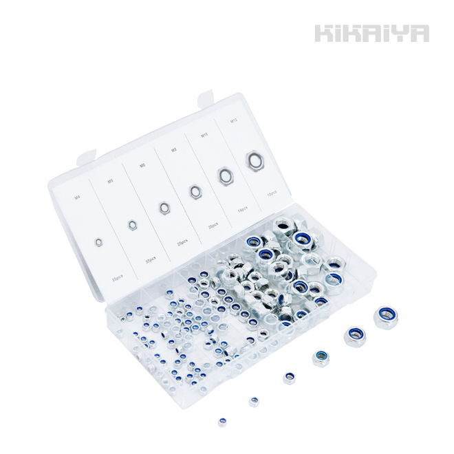 - ロックナットセット 約146個入 6サイズ 収納ケース付 六角ロックナット 緩み止めナット KIKAIYA