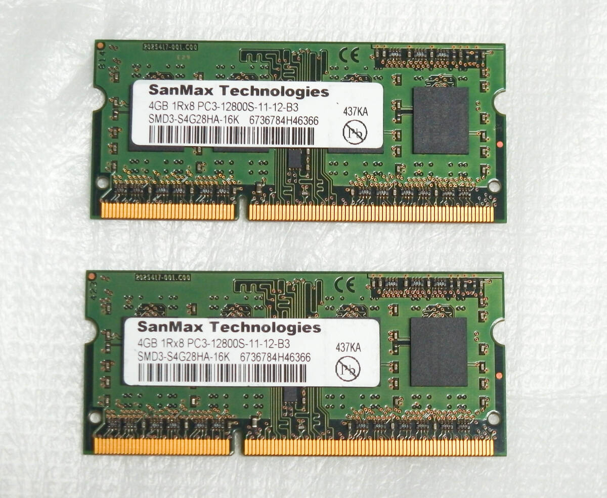 > ノートパソコン メモリー SanMaxPC3-12800S 4GBx2枚 動作確認済み