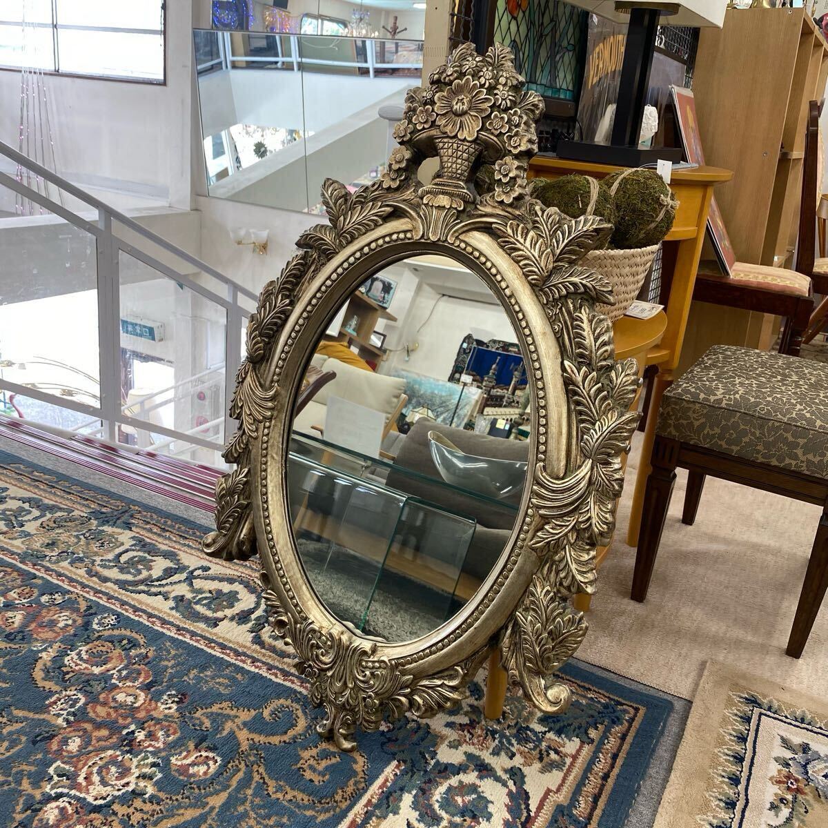 - イタリア製 ウォールミラー 鏡 姿見 ゴールドフレーム 木製 アンティーク調 647