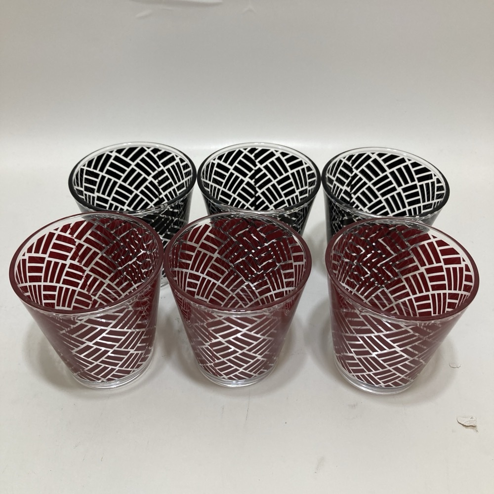 - モダン 伝統柄 グラス 網代 模様 赤 黒 和柄 グラス カップ コップ★K3121