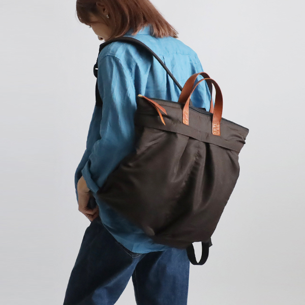 - (送料無料)新色 Mサイズ 軽量 収納上手な多ポケット リュックサック クッション入ナイロン革レザー 茶 P78M