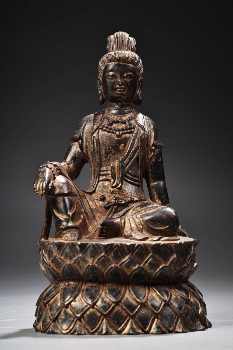 - 『館蔵珍品 銅製 泥金 自在觀音像』仏教古美術 供養品 貴重物品 収蔵品 中国古美術