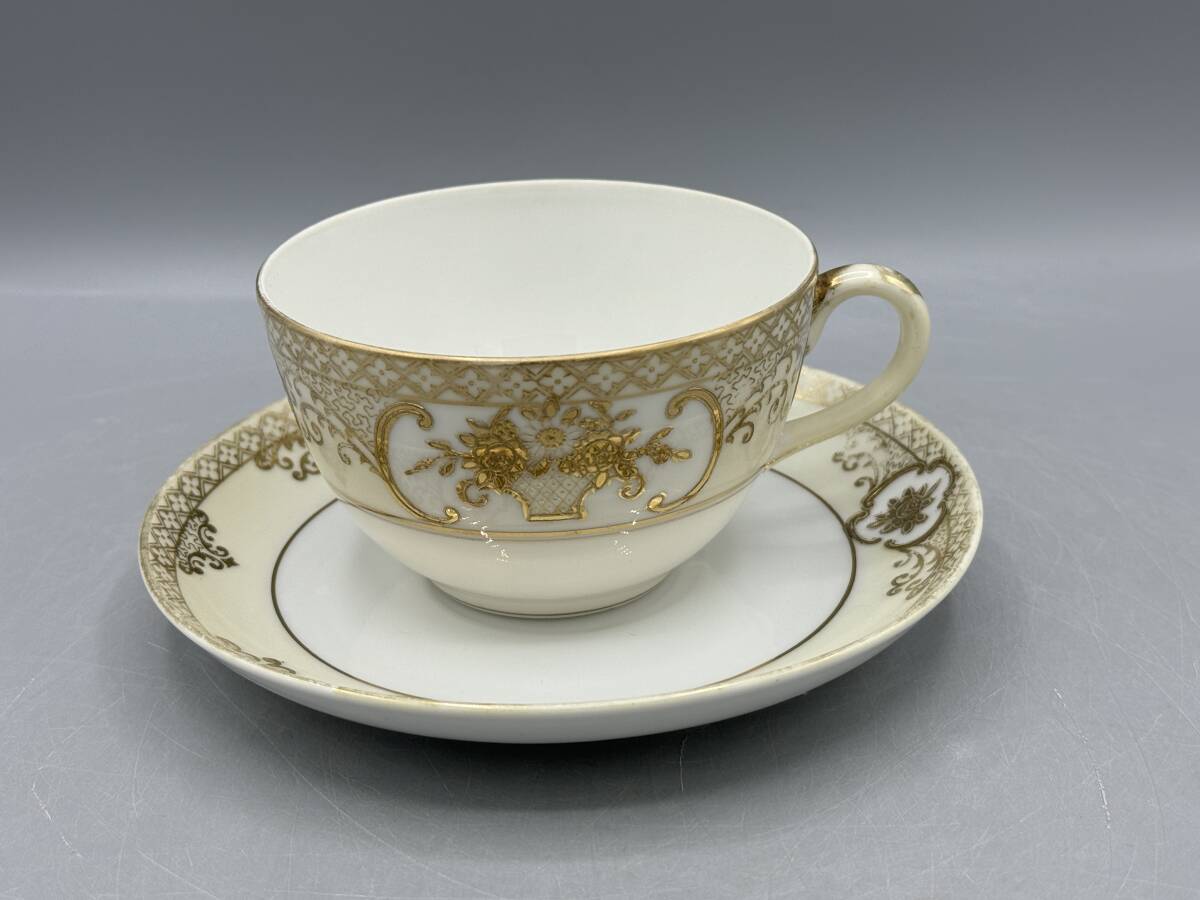 - 里帰り ノリタケ フラワーバスケット カップアンドソーサー (-8-E) 金彩 お花 マルキ印 カップ&ソーサー