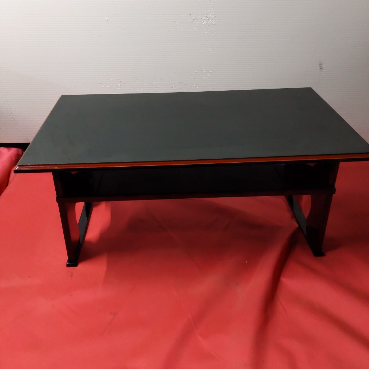 - y506 65×35×25.5cm 木製 折りたたみ 心月堂 折りたたみ式 御供机 経机 塗り机 黒 赤縁