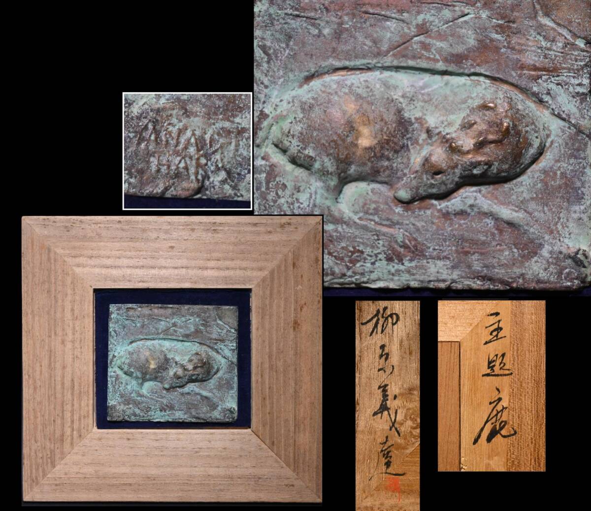 - 真贋保証 文化功労者 彫刻家■柳原義達 作■ 主題『鹿』ブロンズ レリーフ サイン有 銅 木製枠 飾額 朝倉文夫に師事 検:鳩 道標
