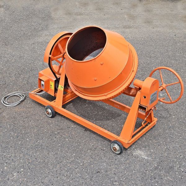 - 【新潟発】タケムラテック コンクリートミキサー PM-2.5型 100V ポットミキサー 混合容量70リットル モーター付 棒ハンドル 中古 工具 北陸