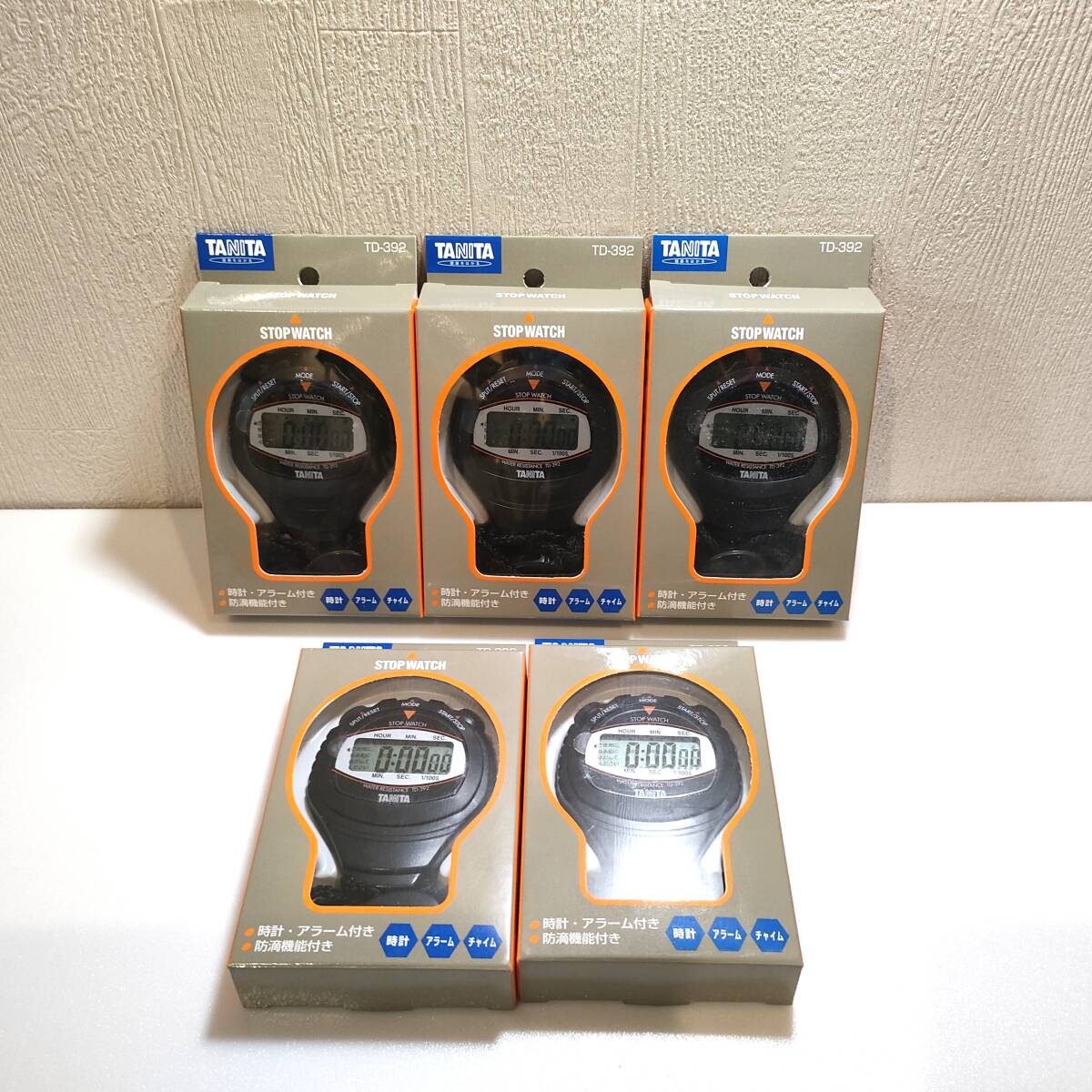 - 丸カ313 新品未使用 5個まとめ売り TANITA タニタ ストップウォッチ TD-392-BK 防滴機能付き 時計 アラーム付き STOPWATCH デッドストック