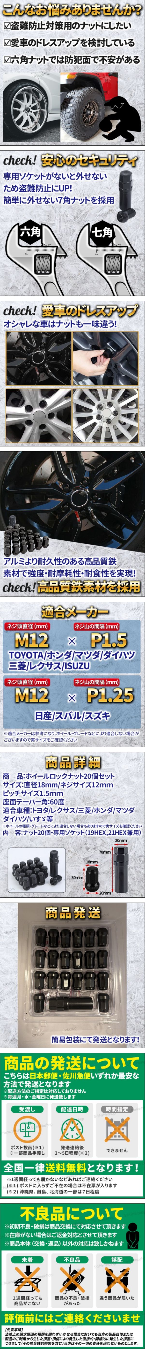 > ホイールナット ロックナット ホイールロックナット 黒 m12×p1.5 盗難防止 20個セット トヨタ ホンダ レクサス マツダ ダイハ ツ 三菱 ②