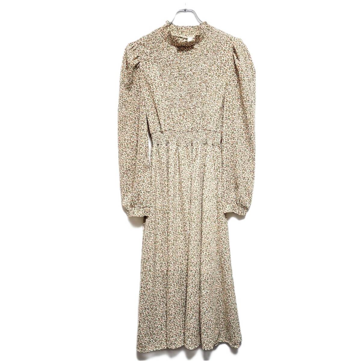- 大柚子 ワンピース ロング丈 長袖 花柄 ベージュ ウエストゴム 春秋 M L