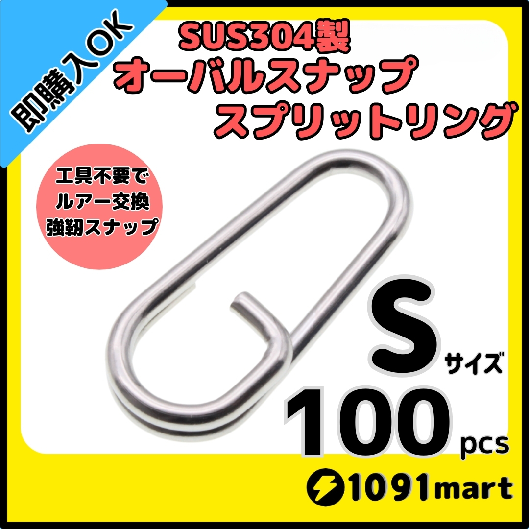 > 【送料180円】SUS304 ステンレス製 オーバルスナップスプリットリング Sサイズ 100個セット ジギング 青物 SLJ 工具不要で楽々ルアー交換