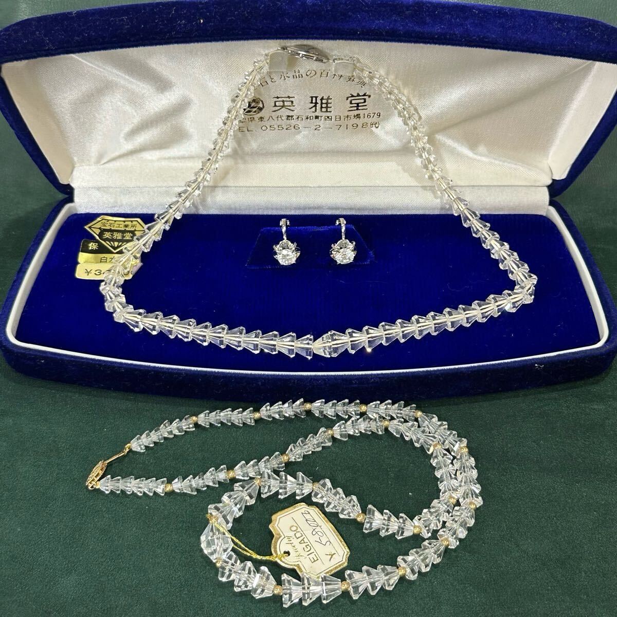 - 美品!英雅堂 白水晶 k14 14金 ブリリアンカット ネックレス×金具 silver シルバー×イヤリング セット おまとめ水晶 ネックレス 天然水晶