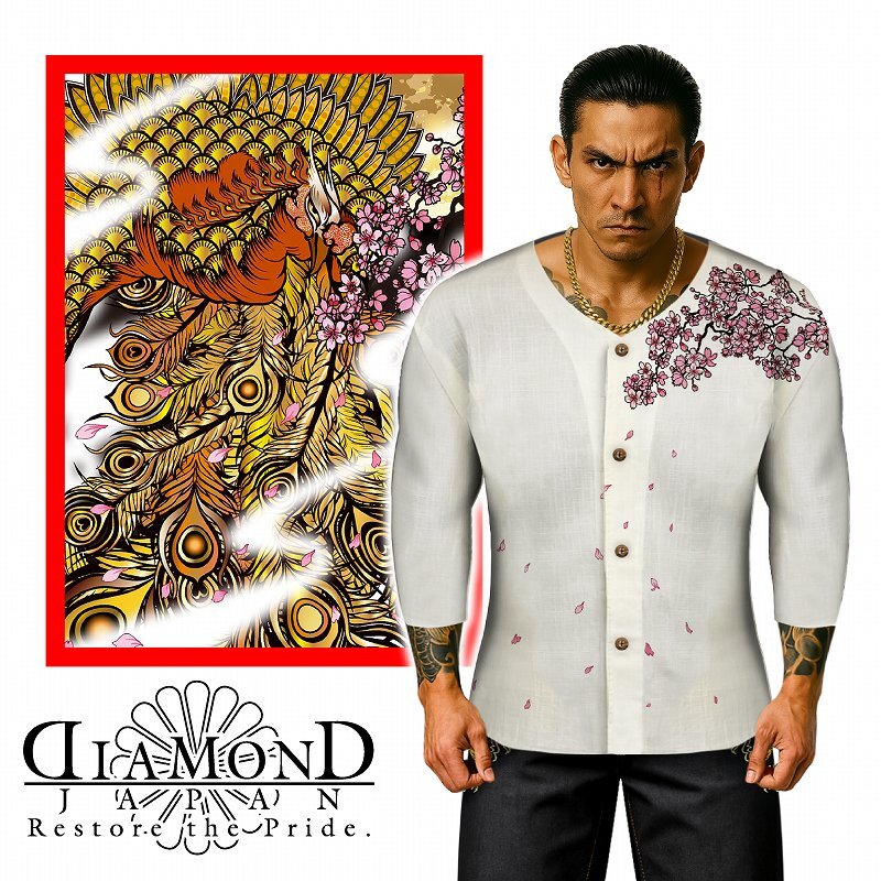 - 桜と鳳凰柄 鯉口シャツ DJ-223 和柄 ヤクザ ヤンキー オラオラ系 五分袖 柄シャツ 服 派手 メンズ ファッション