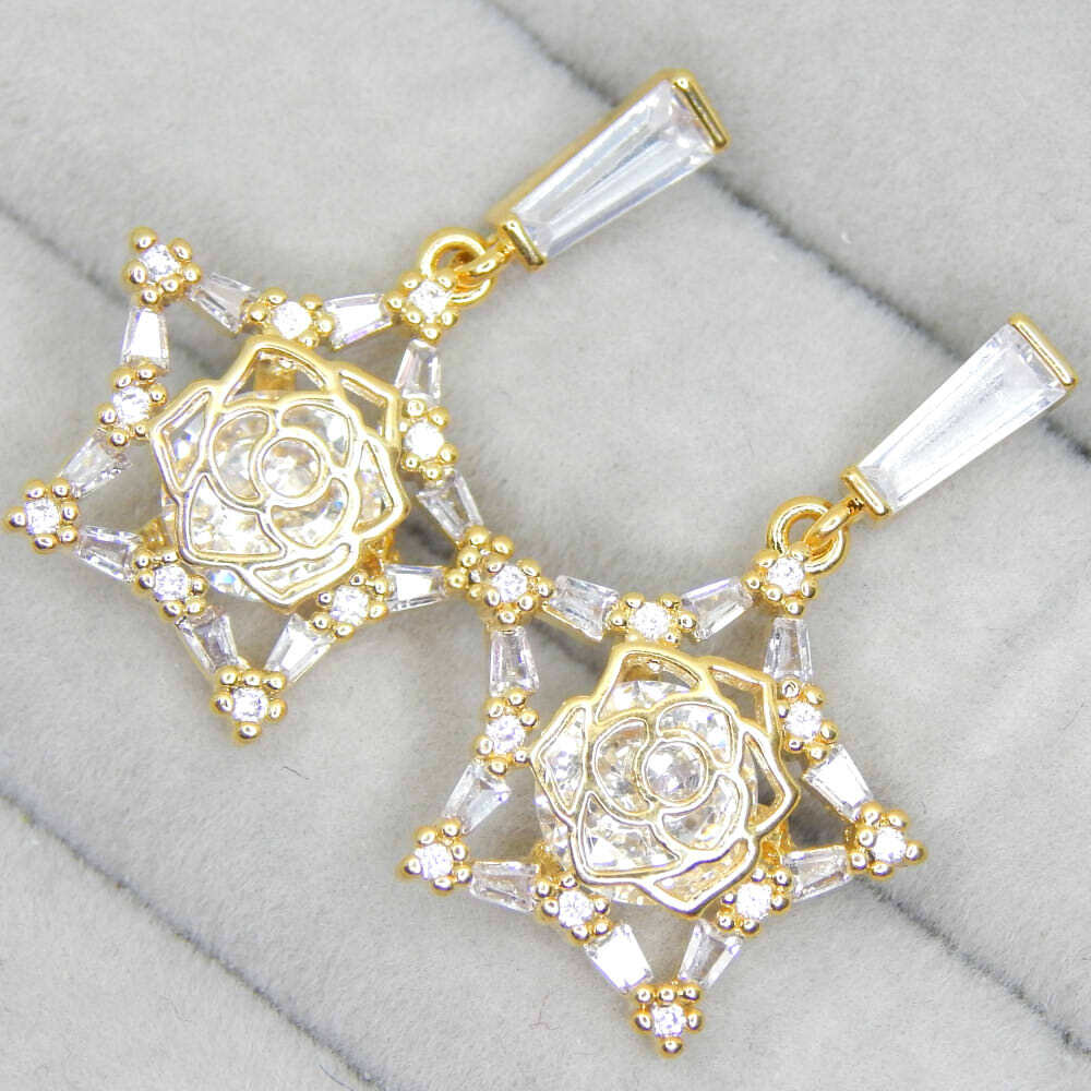 - CZダイヤモンド 星&薔薇デザインピアス レディース シルバー925刻印 カラーストーン 宝石 cz ゴールド ジルコニア イヤリング化可