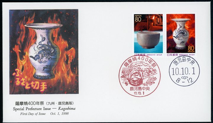 - 1115 【FDC】ふるさと 鹿児島県「薩摩焼400年祭」[鹿児島中央/10.10.1/NCC]