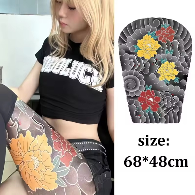 - ZQ02 TATOOシール タトゥーシール 和柄 和彫り入れ墨シール 足用入れ墨シール牡丹柄 簡単で長持ち イベントや動画撮影にリアルな刺青シール
