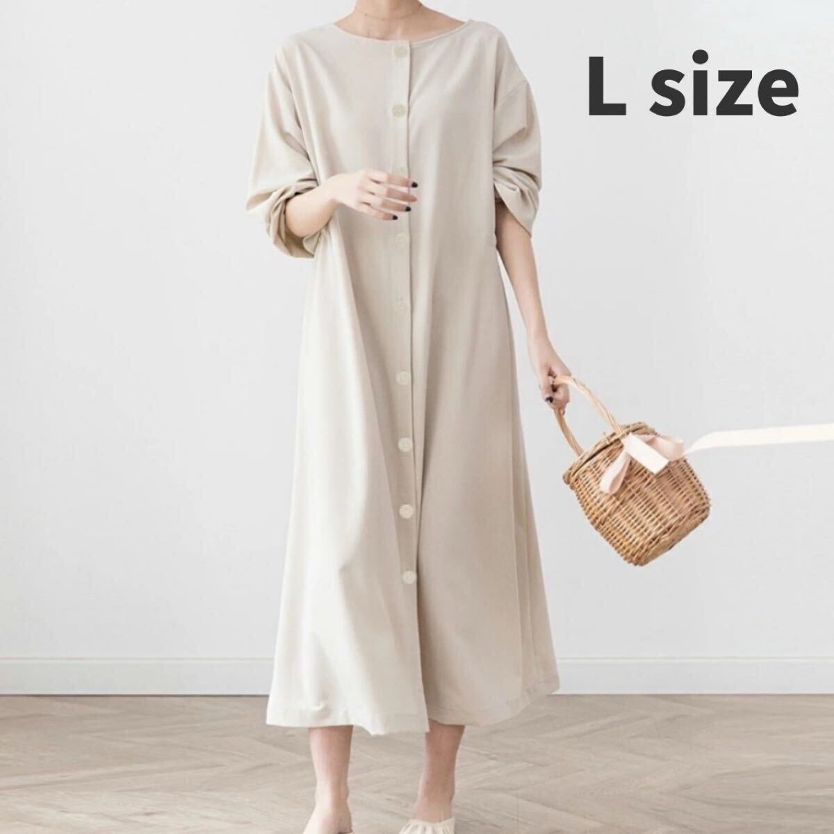 > H32★シャツワンピース ロングワンピース 長袖ワンピース カーディガン アイボリー ハイウエスト ゆったり 大人可愛い 通勤 レディース L