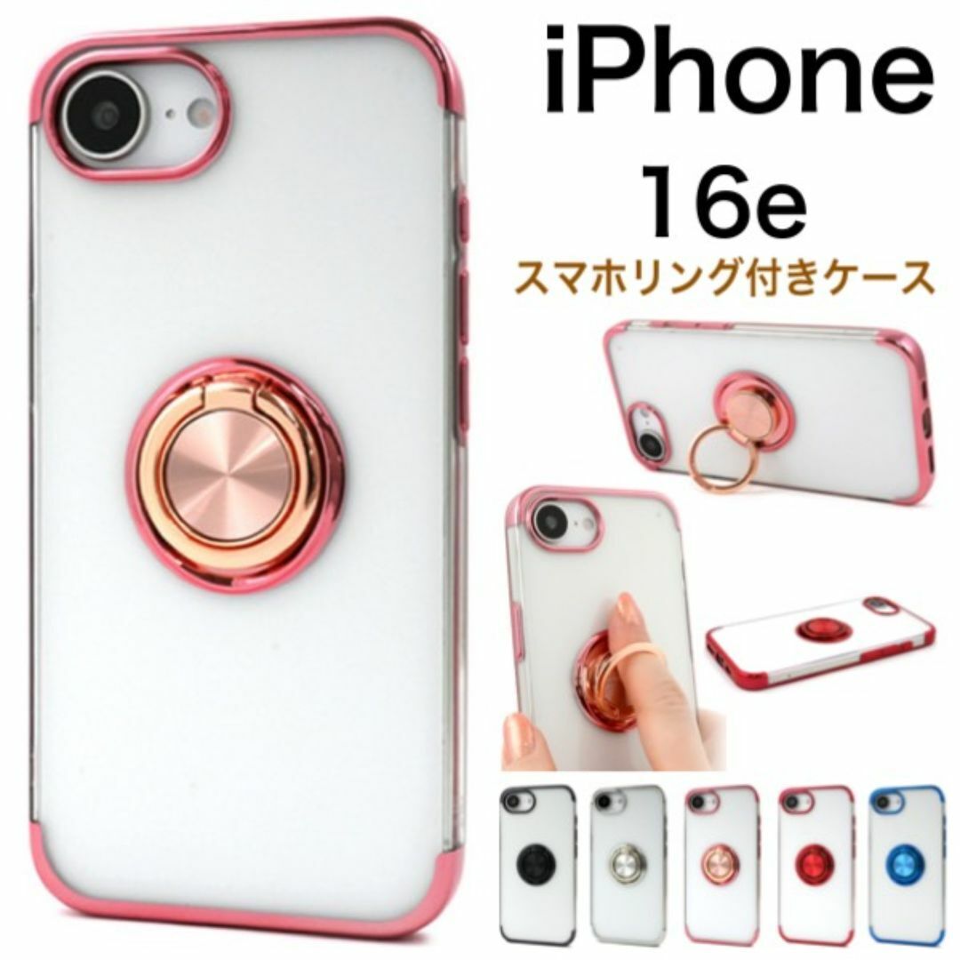 > iPhone 16e スマホリング付きメタルカラーバンパーソフトクリアケース /アイフォン スマホケース