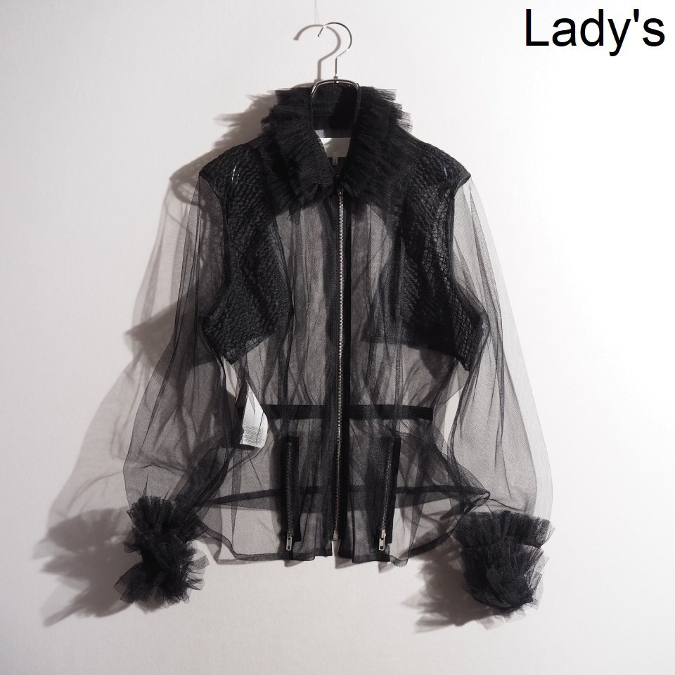 > P6531P ▼Maison Margiela メゾンマルジェラ 白タグ▼ 22SS フリルデザイン チュール シアー ジップジャケット ブラック 36 春夏 rb mks