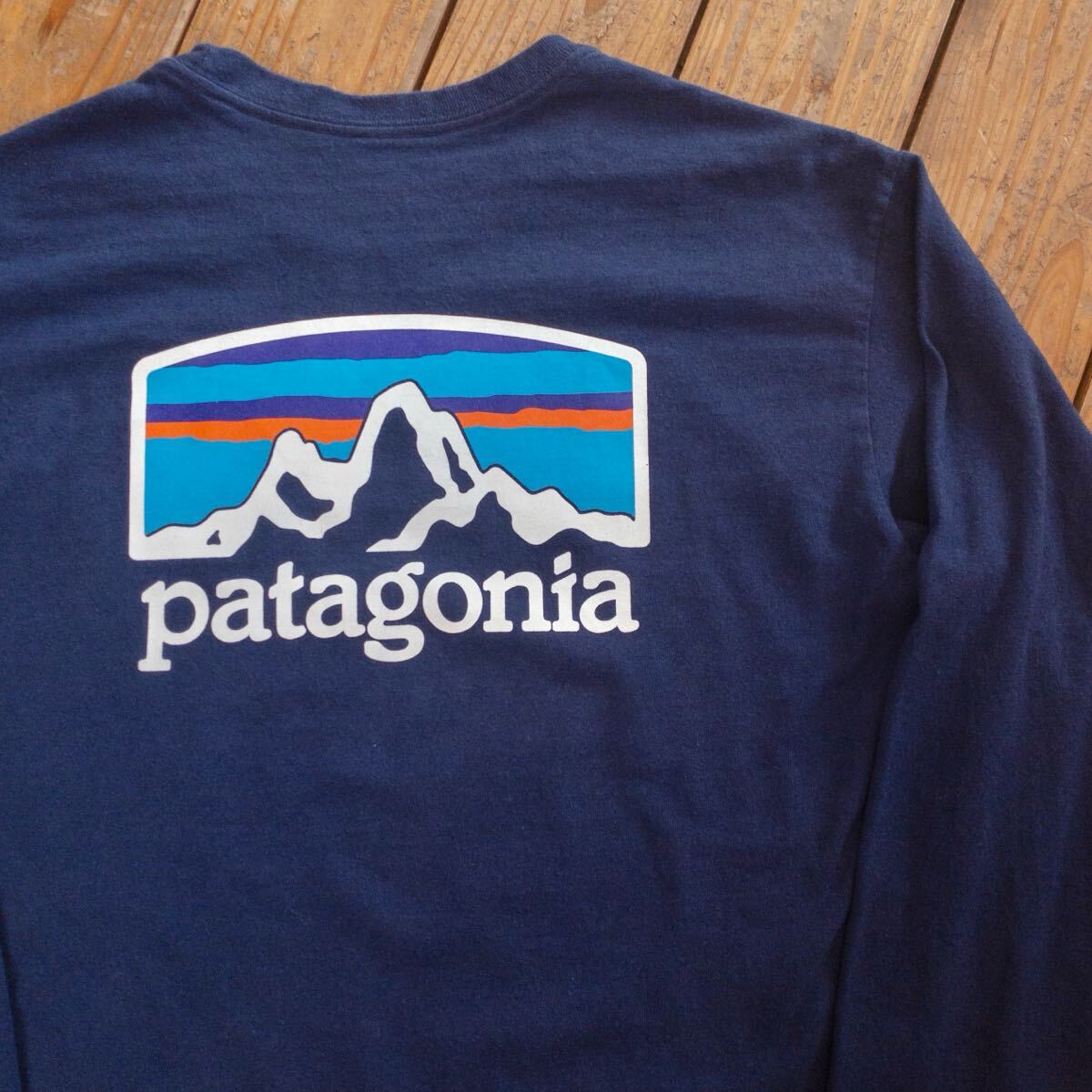 > USA古着 パタゴニア patagonia ロンT メンズ Sサイズ ネイビー レギュラーフィット カジュアル ロングスリーブ 長袖 バックプリント T3021