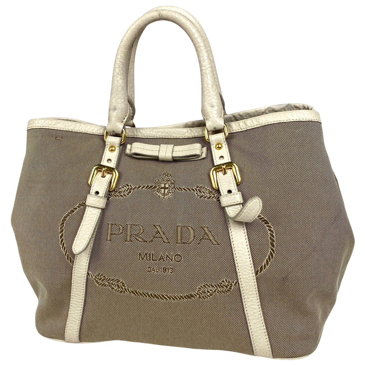 - プラダ PRADA ロゴプレート ジャガード トートバッグ 2WAY ハンドバッグ ショルダーバッグ キャンバス ベージュ レディース 【中古】
