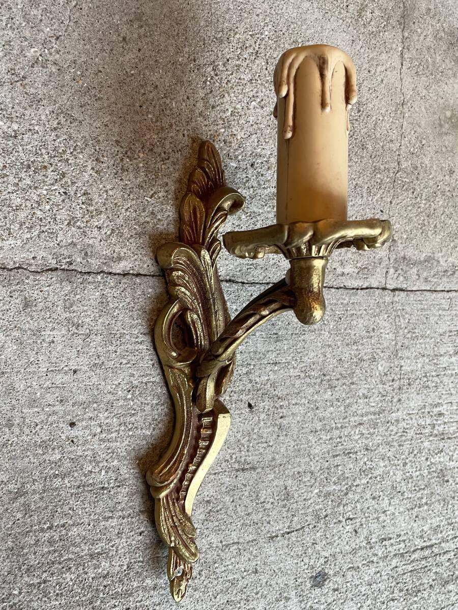 - 1-4. フランスアンティーク ランプ ブラケット ブロンズ 1灯 キャンドル ウォール 蚤の市 店舗 什器 カフェ 美容室