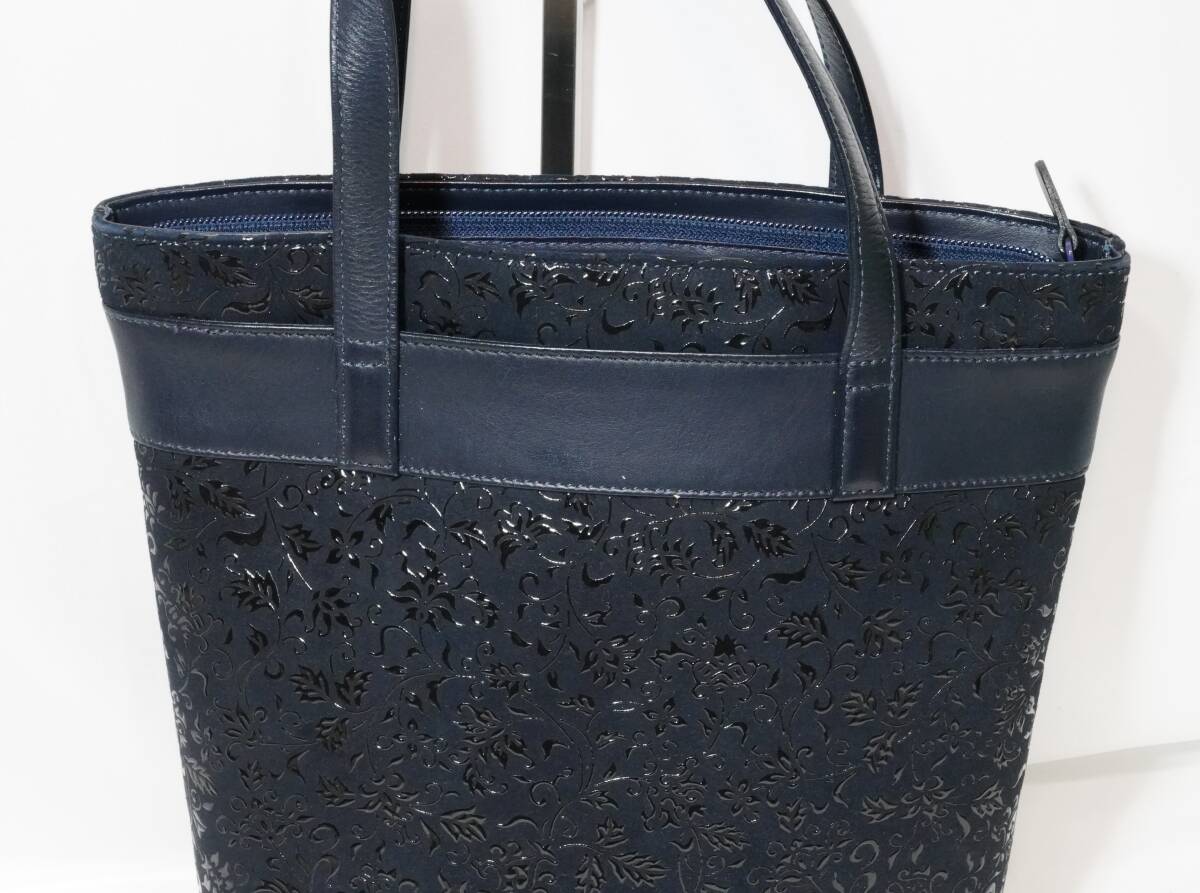 - 印傳屋 インデンヤ バッグ 天ファスナー レザー 本革 漆 ボタニカル 柄